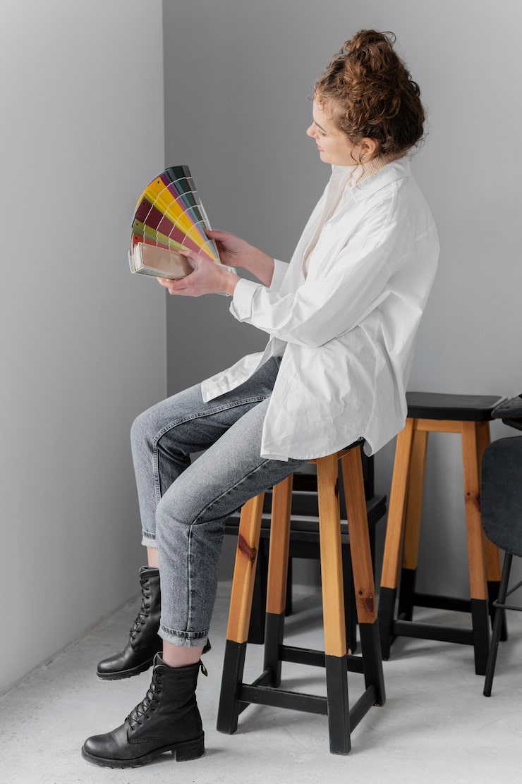 В интерьере преобладает насыщенный синий цвет, который удачно сочетается с терракотовыми, желтыми, зелеными и серыми оттенками. Тепло натурального дерева и нейтральность белого смягчают эту выразительную цветовую гамму, обеспечивая визуальную согласованность помещений. Несмотря на разнообразие используемых цветов, интерьер отличается целостностью и гармонией: каждый цвет присутствует в каждом уголке, создавая деликатные акценты.