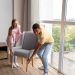 В небольших помещениях можно создать атмосферу «комфортного минимализма». Для этого достаточно светлой отделки в солнечном помещении (благодаря большим окнам), деревянного пола, мягкого дивана и торшера для создания уголка для чтения. Добавление ярких текстильных диванных подушек, пары мягких бескаркасных пуфов или коврика с пестрым орнаментом придаст комнате теплоту и уют.