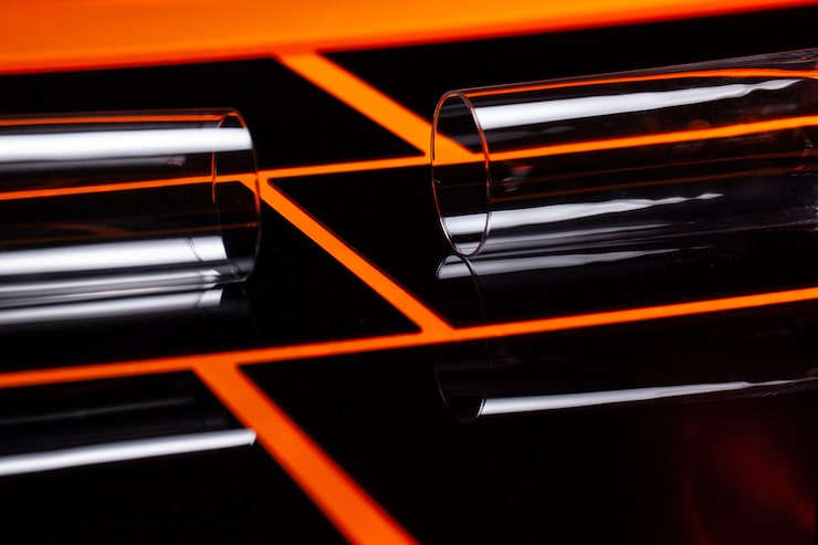 Плексиглас, также известный как прозрачный акриловый пластик, первоначально применялся в сфере строительства, однако дизайнеры проявили к нему интерес. Этот материал стал классическим примером для стиля «космический» дизайн в 1960-х годах. Именно тогда были впервые продемонстрированы бесцветные стулья и светильник Acrilica.