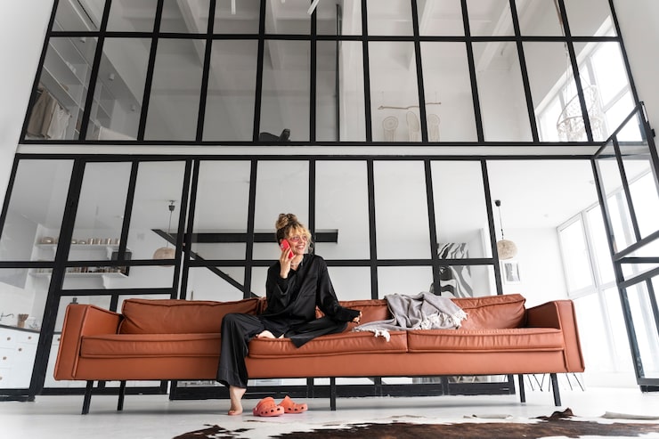 В большинстве жилых комнат гостиная, как правило, является центральным пространством. Ее стильный дизайн будет выглядеть эффектнее, если комната оталена большими окнами, фактурными стенами и деревянным полом. Ключевым элементом комнаты может стать большой диван, обивка которого выполнена из ткани или натуральной кожи. Диван может быть выполнен в светлых тонах, но более привлекательно будет смотреться мебель насыщенного, яркого цвета. Диван желательно выбрать в современном стиле.