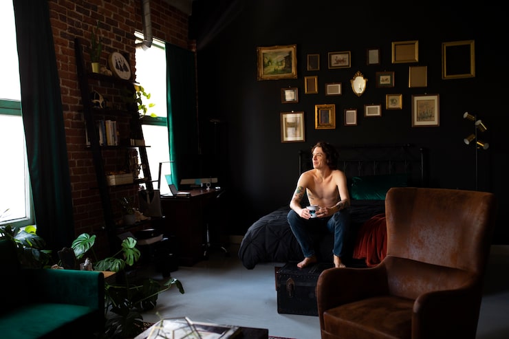 В условиях ограниченного пространства небольшой квартиры, где зачастую имеется только одна комната, она выполняет функцию спальни и является личным укрытием. Поэтому рекомендуется визуально отделить ее от остальной части помещения с помощью тканевой ширмы, матового стекла или шторы. При оформлении стен можно оставить одну из них с кирпичной отделкой, а остальные поверхности окрасить в однотонные цвета. Это позволит создать уют даже в самой маленькой комнате и визуально смягчит пространство.
