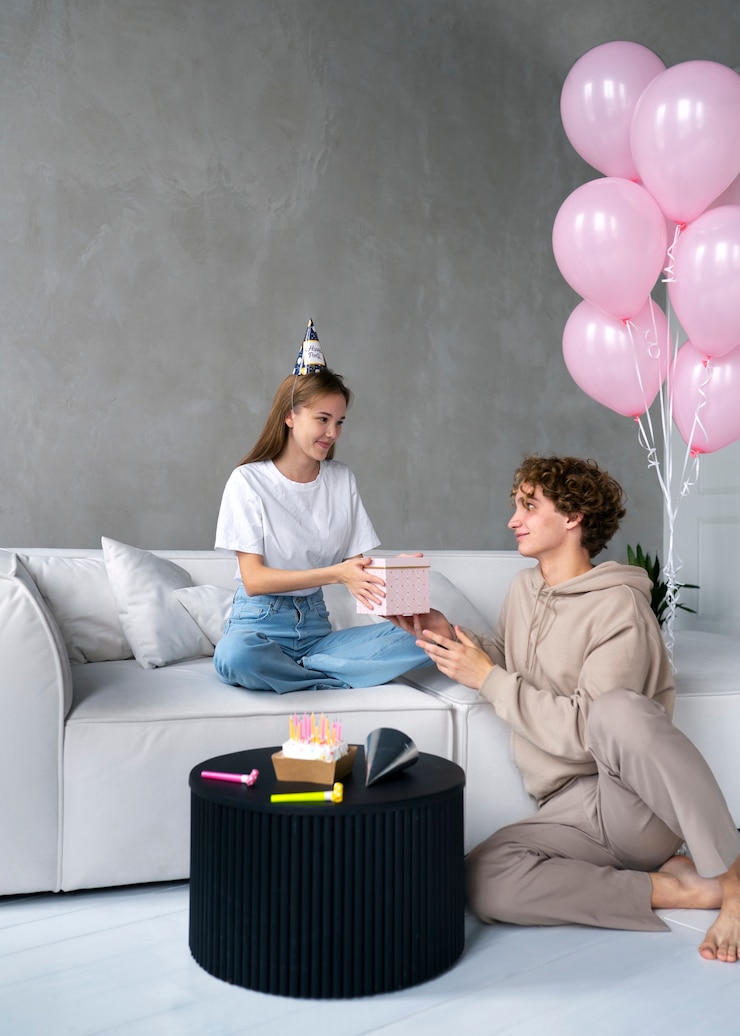 Клиенты купили эту однокомнатную квартиру площадью 34 квадратных метра в качестве подарка своей дочери на совершеннолетие и обратились к дизайнеру интерьера Александре Войновой с просьбой разработать дизайн, чтобы вручить имениннице полностью готовое жилье. Среди пожеланий было наличие полноценной двуспальной кровати и большого стола для работы в спальне. Кухню необходимо было объединить с гостиной, предусмотрев диван и большой обеденный стол, поскольку дочь часто принимает гостей. Кроме того, заказчики хотели, чтобы кухонный гарнитур был оснащен всей необходимой бытовой техникой.