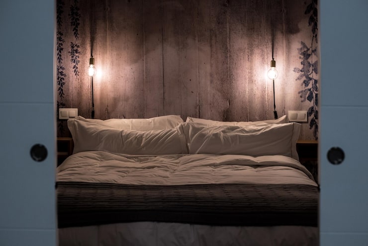 - Цвет и свет: спальню можно оформить в одной цветовой гамме, например, с серыми стенами, а гостиную – в другой, с белыми стенами. Или использовать разные освещение: над кроватью — мягкий, теплый свет, а в гостиной — яркий, холодный. Мозг воспринимает это как различные зоны, несмотря на то, что физически это одна комната.