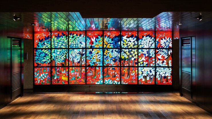 Дизайнеры из студии Shevelevs создали этот интерьер для семьи, состоящей из супругов и двух детей, а также их питомца. Семья хотела получить яркое и оригинальное оформление, вдохновленное Испанией, и выразила желание использовать стеклоблоки. Кроме того, учитывая, что заказчица является художником, это послужило стимулом для дизайнеров к использованию нетривиальных подходов и смелых дизайнерских решений.