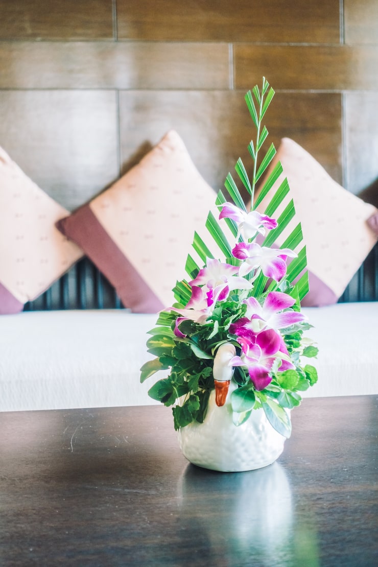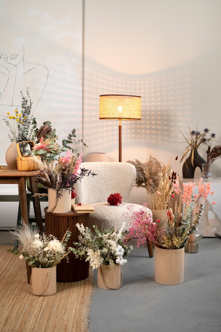 Для оформления интерьера, располагающего к отдыху и создающего ощущение уюта, стоит отдать предпочтение неброским, компактным композициям или, наоборот, легким и вытянутым. А вместо традиционных горшков используйте стеклянные вазы, декоративные шары или прозрачные колбы – такие решения помогут сохранить ощущение простора и не создадут ощущения перегруженности, особенно в небольших комнатах.