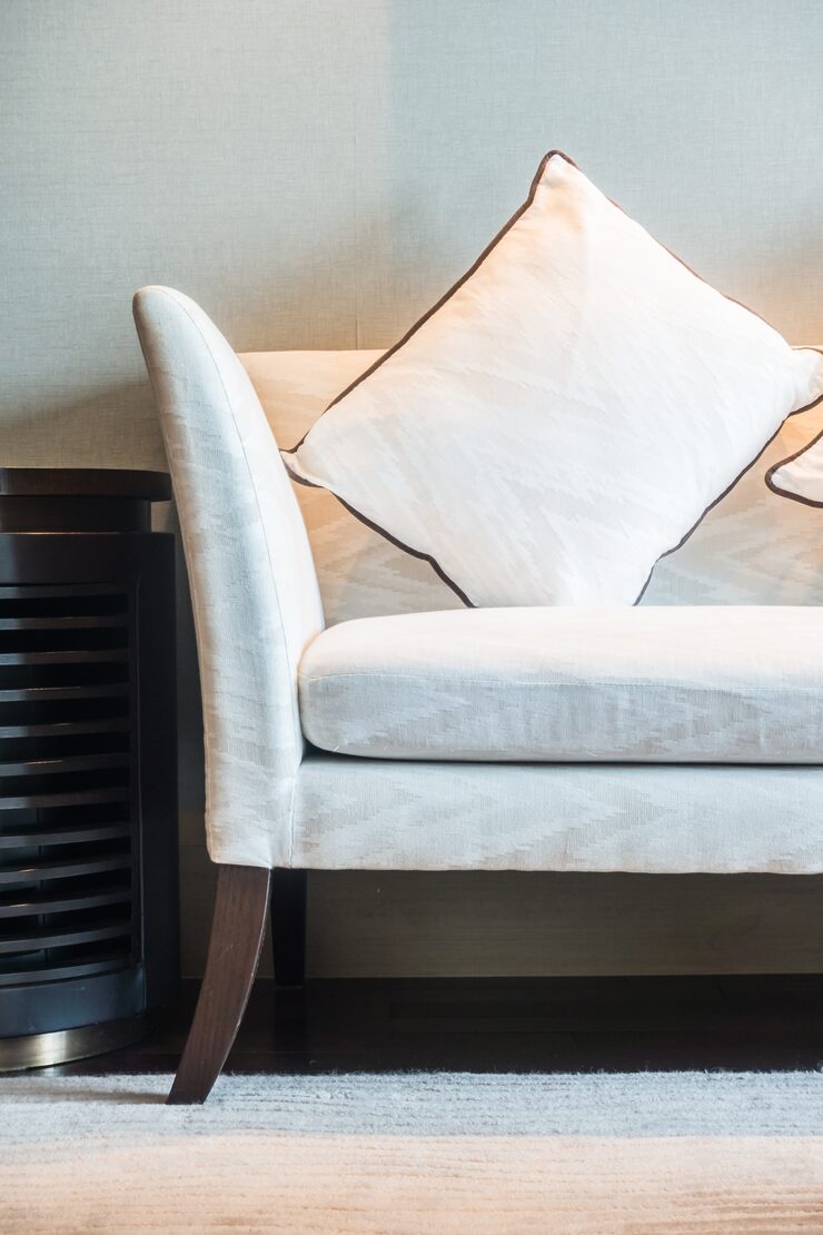 Диван должен соответствовать отделке комнаты и другой мебели. Если в гостиной собраны предметы разных стилей, оптимальным выбором будет модель нейтрального цвета без акцентного декора. Чтобы добавить изюминку, можно приобрести несколько красочных подушек и плед.