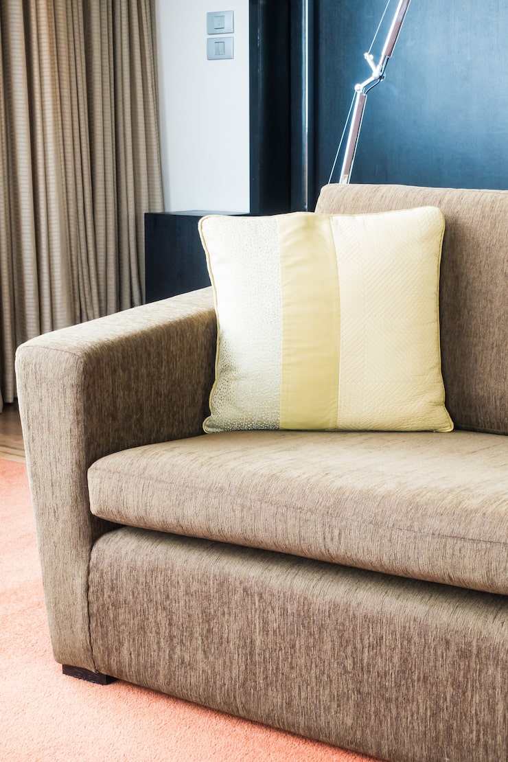 Для того чтобы новая мебель органично дополняла интерьер комнаты, её цвет должен соответствовать другим элементам декора или деталям оформления. Не требуется подбирать множество комбинаций, достаточно нескольких цветовых акцентов. Например, обивка или декоративные подушки могут быть выполнены в том же цвете, что и шторы или напочное покрытие.