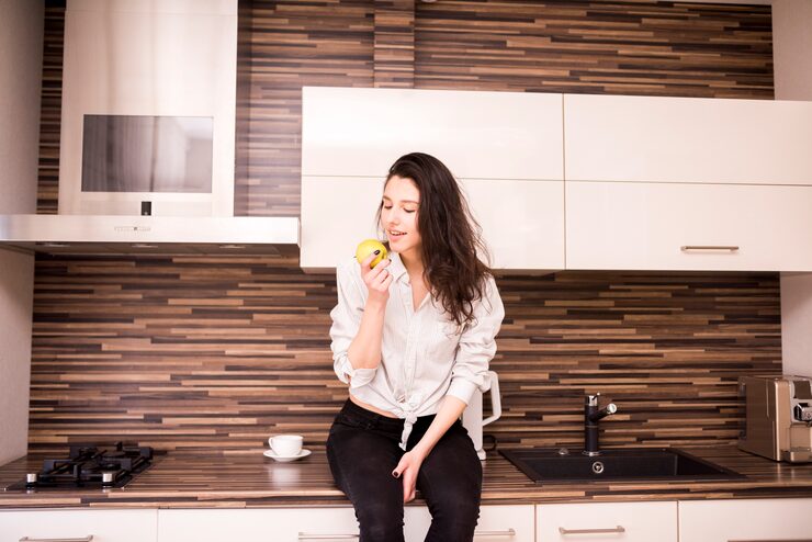 - Если один угол занят мебелью, то обычно второй можно использовать для размещения обеденного стола. Продуманный дизайн кухонного гарнитура позволяет эффективно объединить рабочую и обеденную зоны, обеспечивая их независимость.