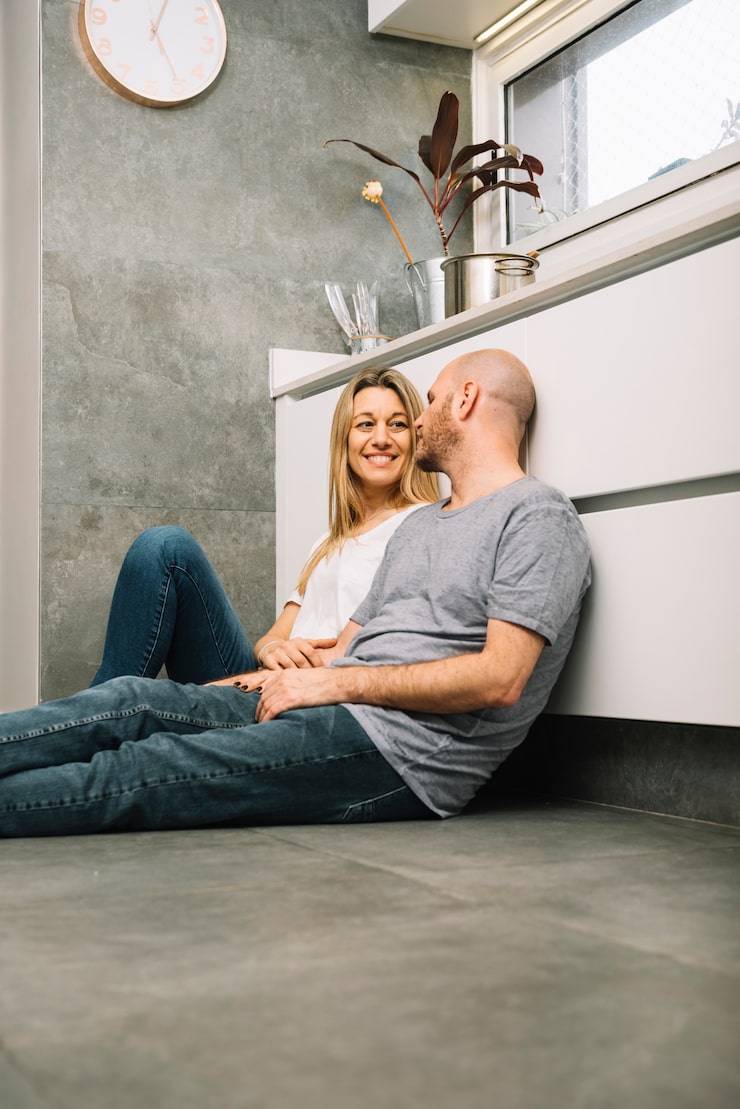 К моменту начала работ квартира представляла собой «бетонный каркас» с открытой планировкой и заранее предусмотренными местами для подключения сантехники. Грамотное расположение мебели и использование визуальных приемов позволили сформировать прихожую, спальню, столовую, кухонную зону, зону для отдыха и телевизионную стену.
