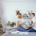 В комнате поставили две кровати с подъёмными механизмами и местами для вещей, а также два рабочих стола. Шкаф в спальне уже был готов, его не заказывали специально. Отделение с полками дети определили сразу — высокие для дочери, нижние для сына.