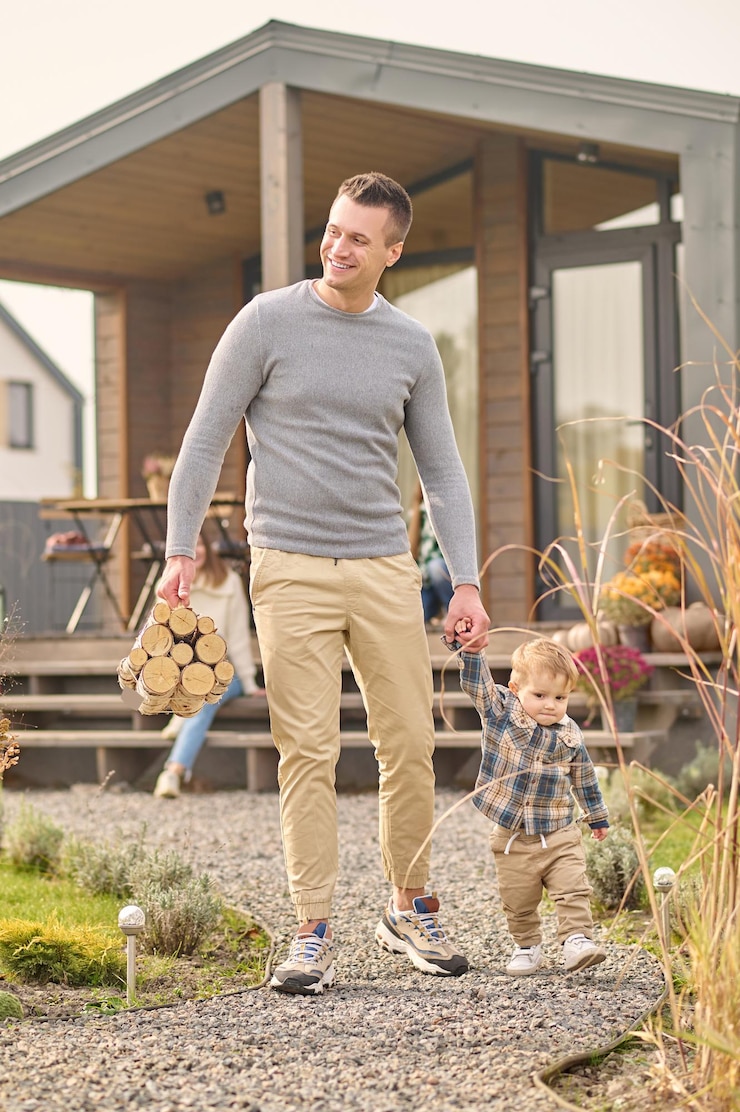 Планировка не претерпела глобальных изменений, однако некоторые помещения были скорректированы. Прихожую расширили за счёт внешней террасы для комфорта большой семьи. Первый этаж включает зоны общего пользования: кухню, столовую, гостиную, прихожую, кладовую и одну спальню. Второй этаж отдан под мастер-блок и детские спальни.