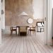 Пол должен соответствовать стилю ретро, что достигается с помощью цвета паркета, напоминающего о времени. В качестве материала для пола не стоит применять старый паркет, так как сейчас существуют технологии производства имитации старения. Помимо паркета можно использовать керамическую плитку с похожим эффектом старения.