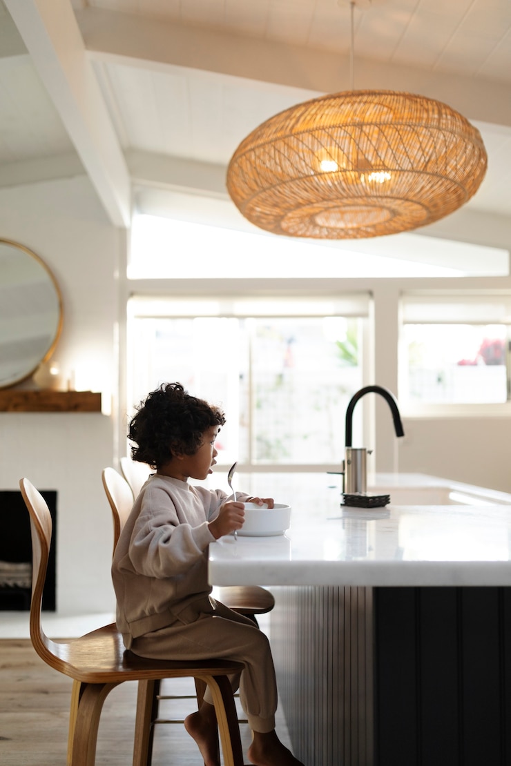 Кухня-гостиная отличается яркими терракотовыми деталями: диваном и декоративными подушками, дополненными теплыми оттенками древесины. Картина, созданная художницей Александрой Марковой по индивидуальному заказу, украшает помещение и гармонично объединяет все цвета интерьера. Балкон переоборудован в кабинет с зоной отдыха, где можно насладиться книгой и чашкой кофе.