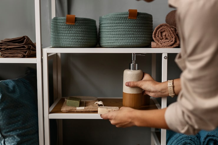 Эти длинные и узкие полки просто устанавливаются на стену и отлично подходят для размещения специй и различных флаконов с маслами.