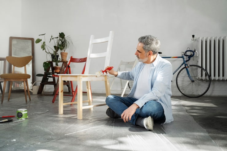 Ввиду того, что проводился инвестиционный ремонт, приоритет был отдан качественным и при этом экономным решениям. Была произведена полная замена инженерных коммуникаций, выполнена стяжка и выравнивание стен. Стены оклеили обоями, предназначенными для покраски, окрасили в светлые тона и декорировали молдингами. В гостиной и спальнях уложили ламинат 32 класса, используя современную укладку «елочкой», а в прихожей и ванных комнатах – широкоформатный керамогранит. Также были установлены натяжные потолки.