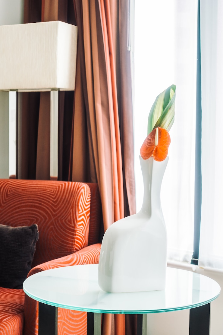 Начнем наше необычное путешествие с просторного холла, где сразу ощущается, что в этой квартире не будет места скуке. Какое бы сочетание течений и элементов из разных стилей вы ни использовали в одном пространстве, необходимо сохранять гармонию и учитывать каждую деталь, ведь именно они формируют специфику стиля фьюжн. При таком обилии различных геометрических форм и линий, белый цвет отделки служит связующим фактором и, своего рода, необходимостью. Просторные комнаты кажутся еще более просторными, а яркие декоративные элементы, произведения искусства и другие арт-объекты выигрышно смотрятся на фоне светлых стен.